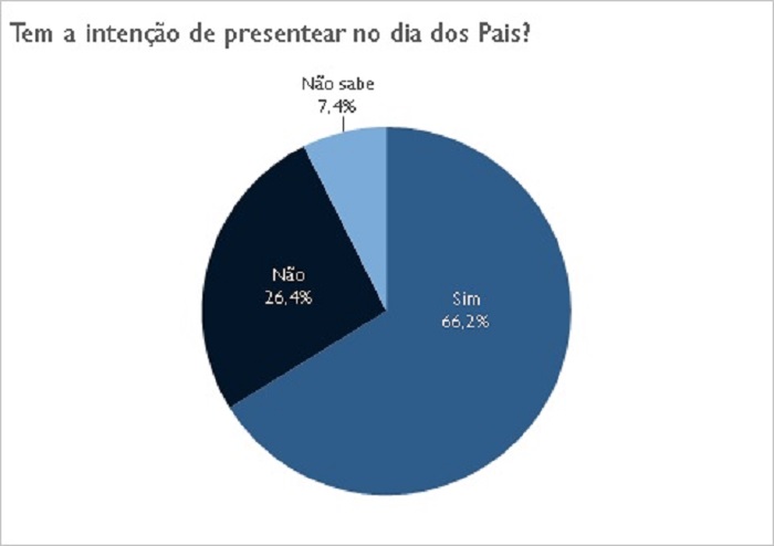 Aumentou o número de filhos que deverão presentear os pais este ano. Segundo sondagem realizada pela Federação do Comércio de Bens, Serviços e Turismo do Paraná (Fecomércio PR), a intenção de compra dos paranaenses para o próximo Dia dos Pais é de 66,2% e é maior do que a registrada no ano passado, que era de 62,3%.