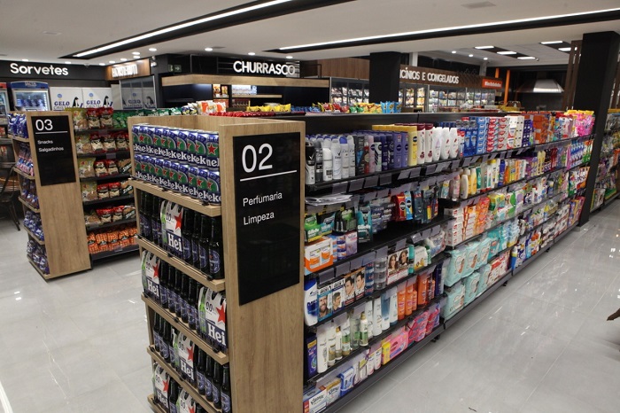 O espaço de 350 m² foi otimizado para abrigar um agradável supermercado compacto de conveniência, com açougue, padaria, confeitaria, hortifruti, perecíveis, adega e bebidas geladas. “É uma loja de passagem para uma experiência de compras em um ambiente que alia a praticidade com os melhores produtos”.