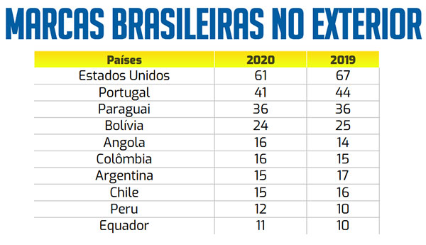 Entre as nações top 10 com maior presença de marcas made in Brazil, os Estados Unidos seguem liderando a lista, com Portugal em segundo lugar e o Paraguai em terceiro. No ano passado, Peru (20%), Angola (14%) e Equador (10%) foram os países que registraram maior variação na presença das redes brasileiras.