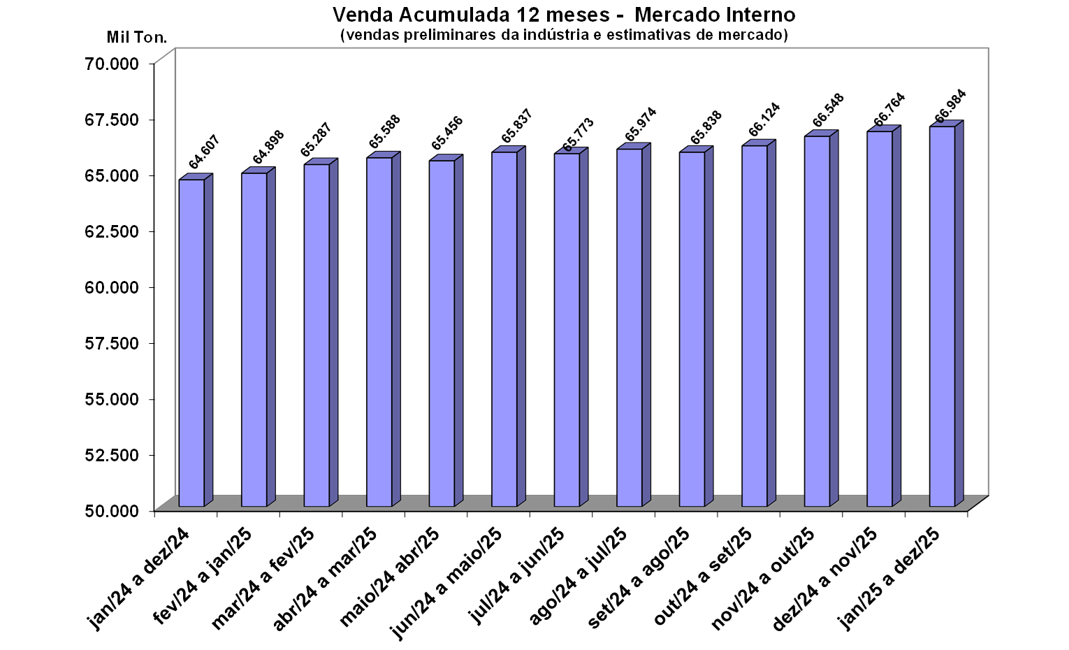 A atividade consolidou a retomada iniciada com a recuperação de 3,9% registrada em 2024. O desempenho corrobora a trajetória de expansão, embora o volume total ainda permaneça distante do recorde histórico de 2014, de 73 milhões de toneladas.